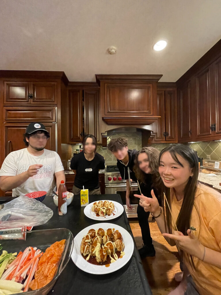 ブラジル人の友人宅で、パーティーをしました。私たちは寿司をつくって、友人はケーキやブラジリアンステーキなどたくさんの料理を用意してくれました。