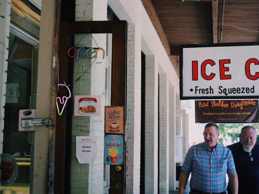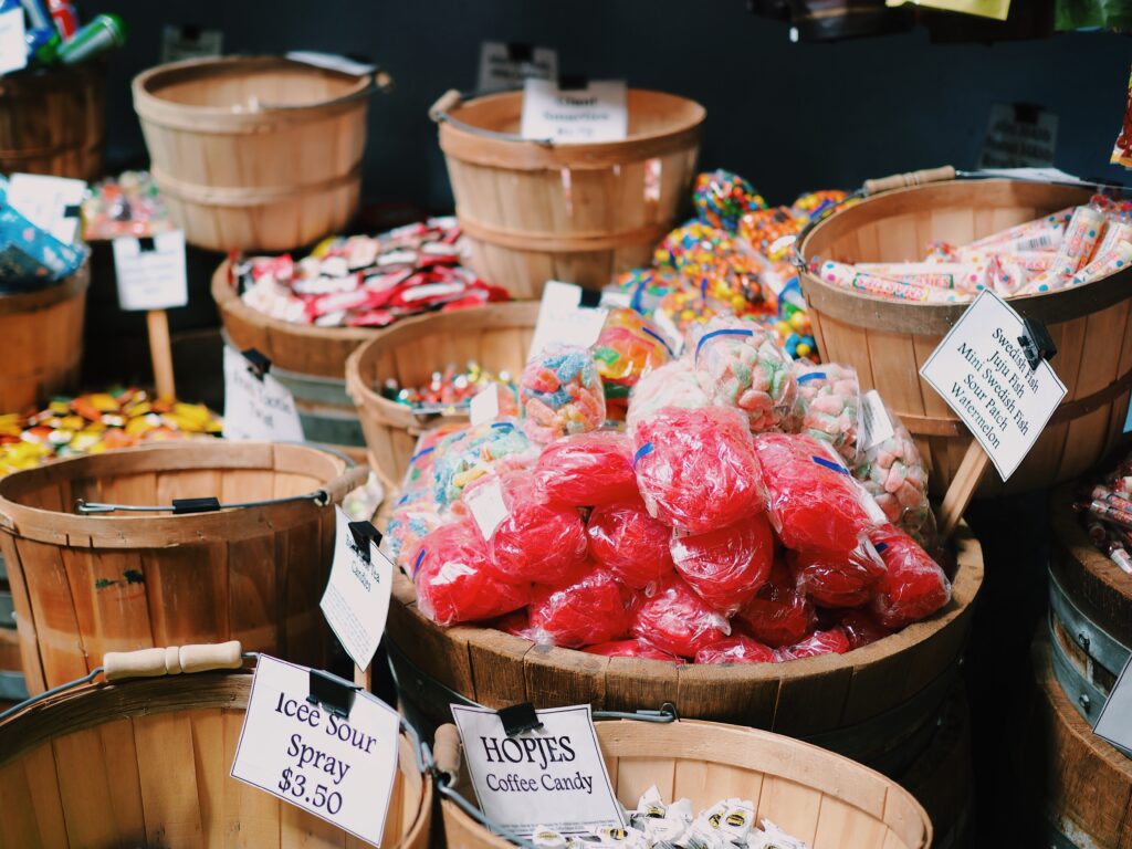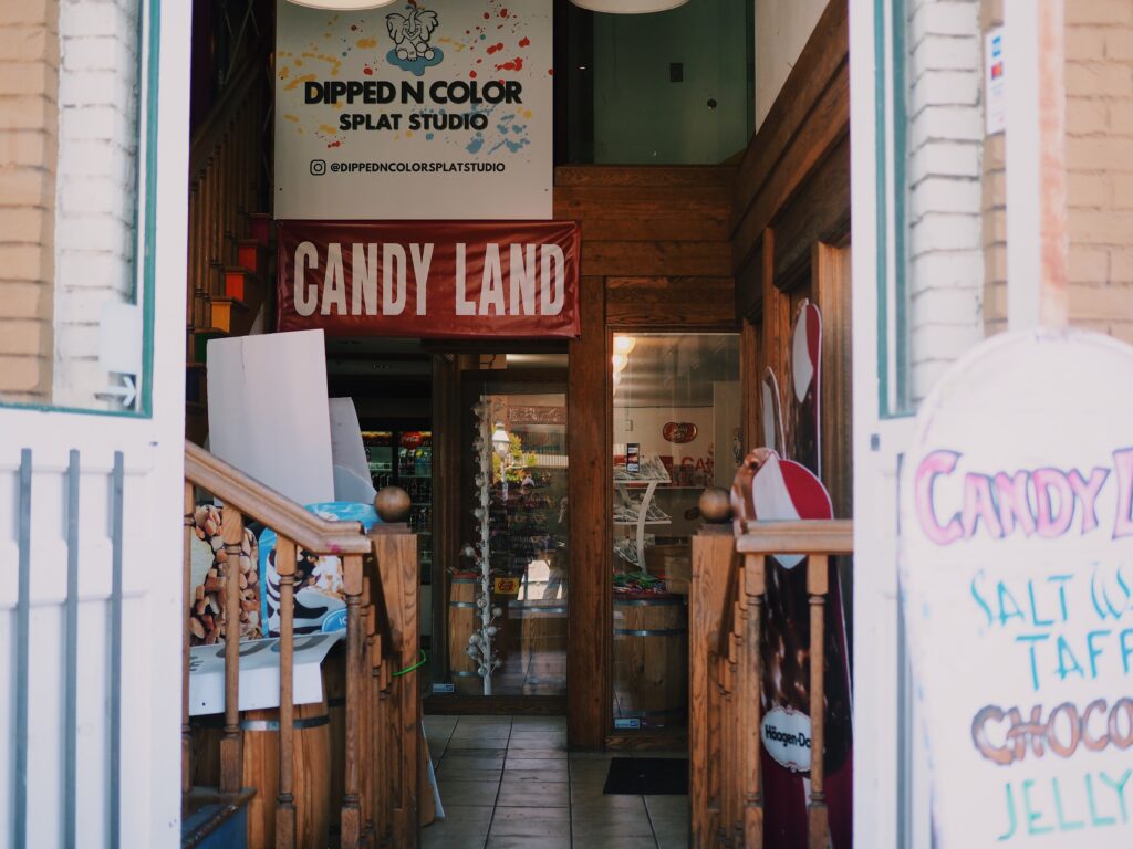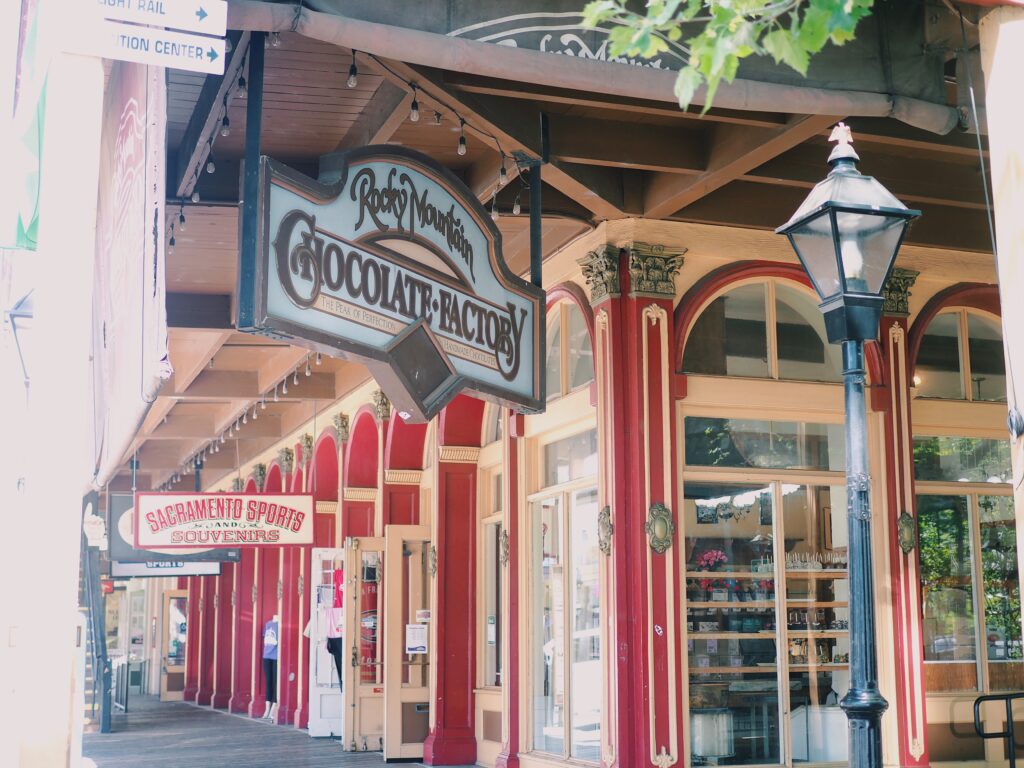 当時のレンガ造りの建物が修復・保存され、西部劇のようなレトロな雰囲気があります。日本でいう昔ながらの駄菓子屋さんのアメリカ版のお店(キャンディーショップ)があったり、垢ぬけないけど古臭さが良い味なお土産屋さんがあったりします。