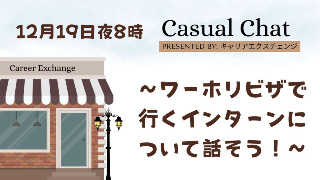 【12月19日夜】”ワーホリビザで行くインターン”をテーマにカジュアルチャットしましょう!