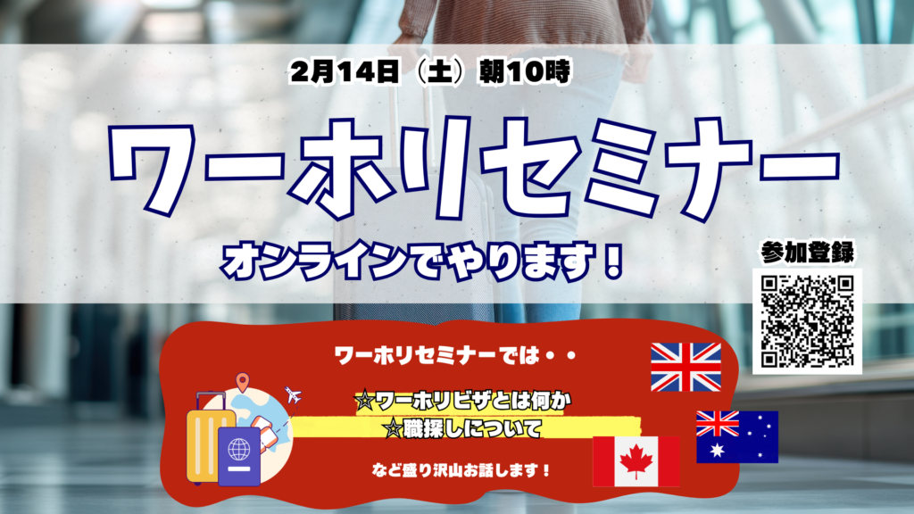 本日は、2月に実施するワーホリセミナーのお知らせです!