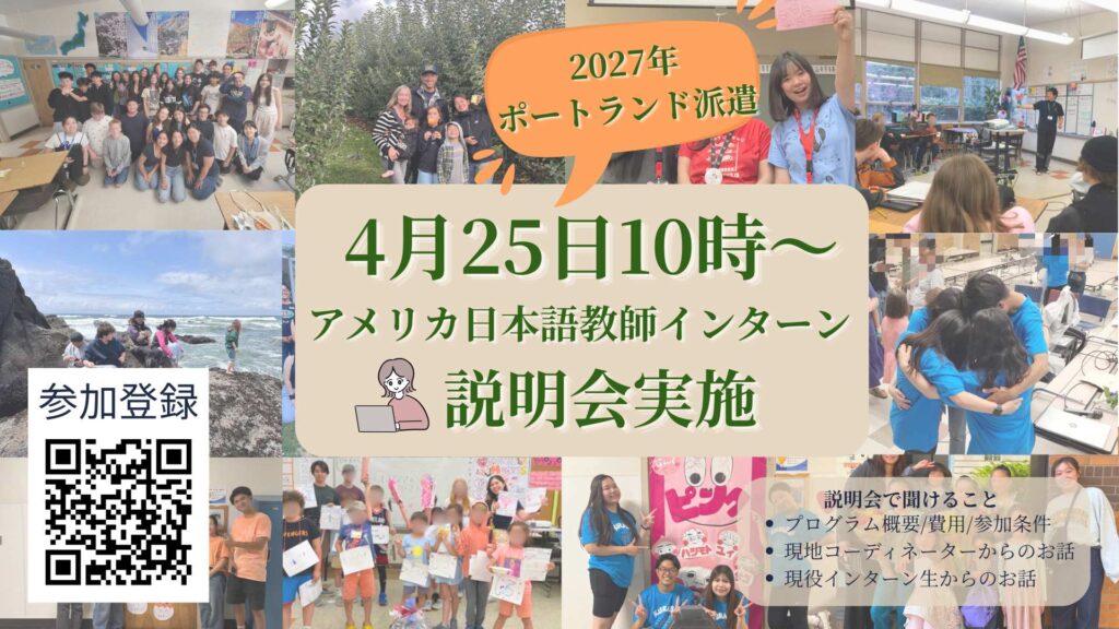 もっと知りたい方はこちら→ポートランド公立校日本語教師インターン