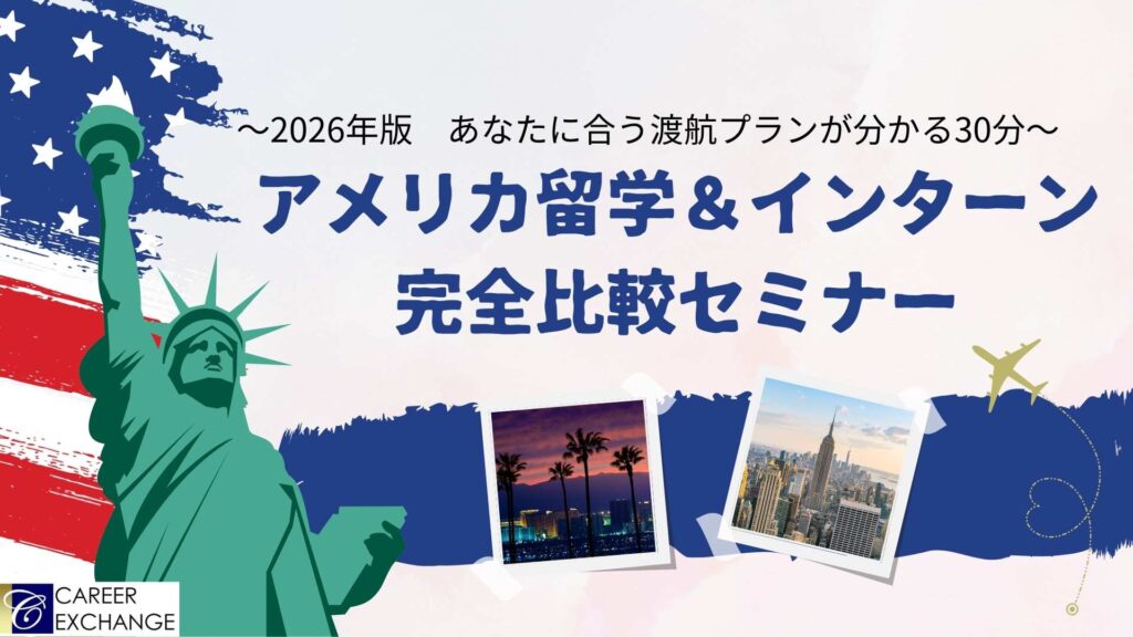 - テーマ:アメリカ留学&インターン完全比較セミナー〜2026年版 あなたに合う渡航プランが分かる60分〜
