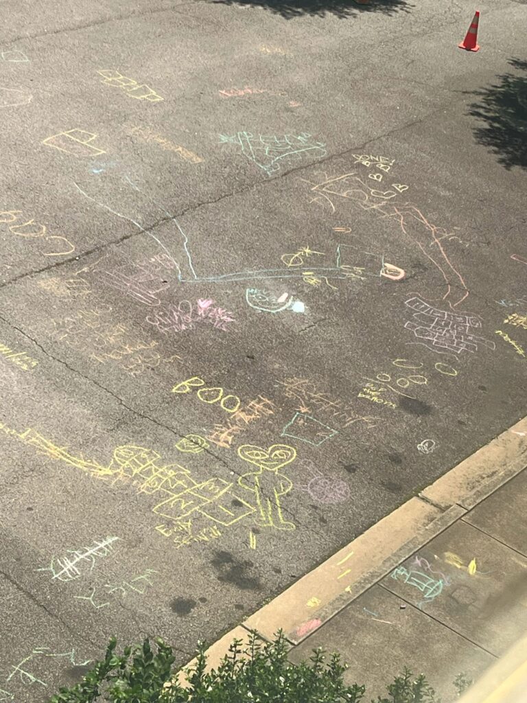 ⑤学校の最終週にみんなでチョークを使って描いたらくがき