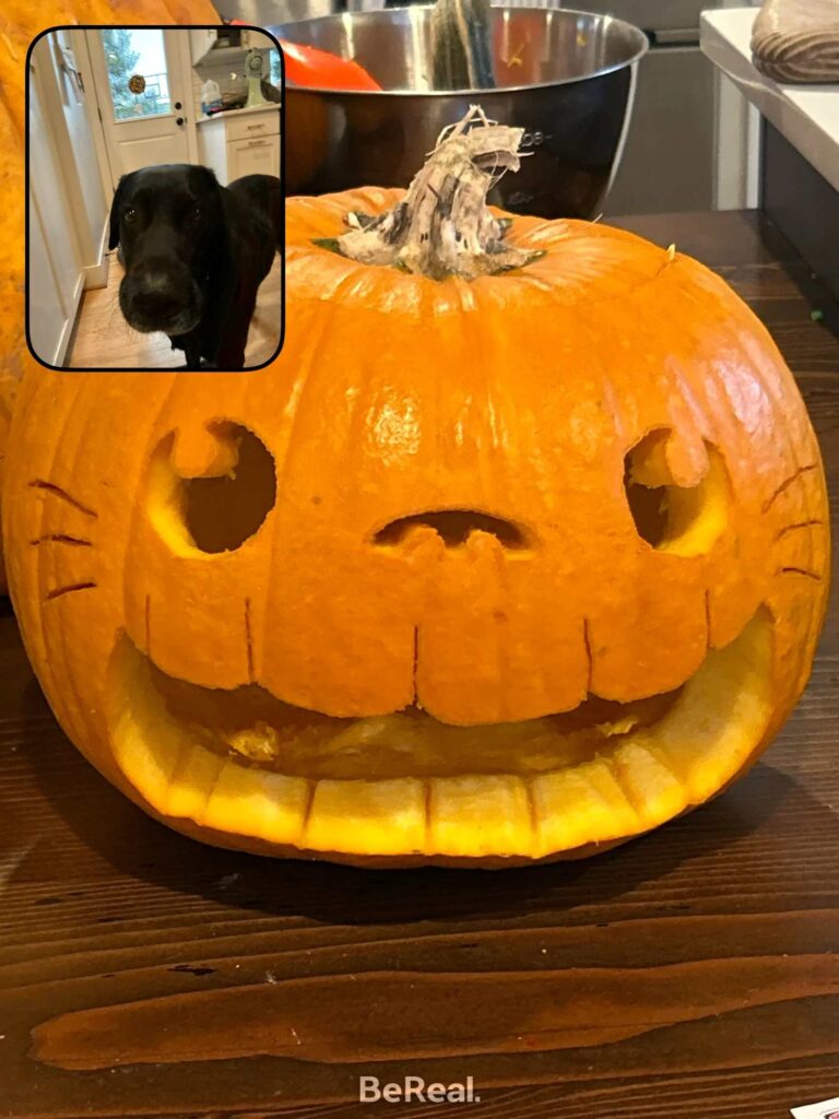 パンプキンカービングの写真です。トトロを彫りました。完璧主義の私は、気づいたら家族のみんな全員終わってるのに彫り続けてました。