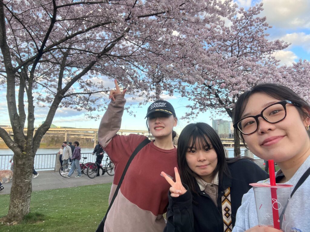 ポートランドの川沿いの桜が咲いていたのを他のインターンと見に行ったときの写真です。