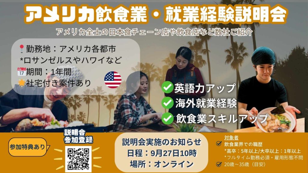 🍣 アメリカ飲食業・就業経験説明会【9月27日開催】
