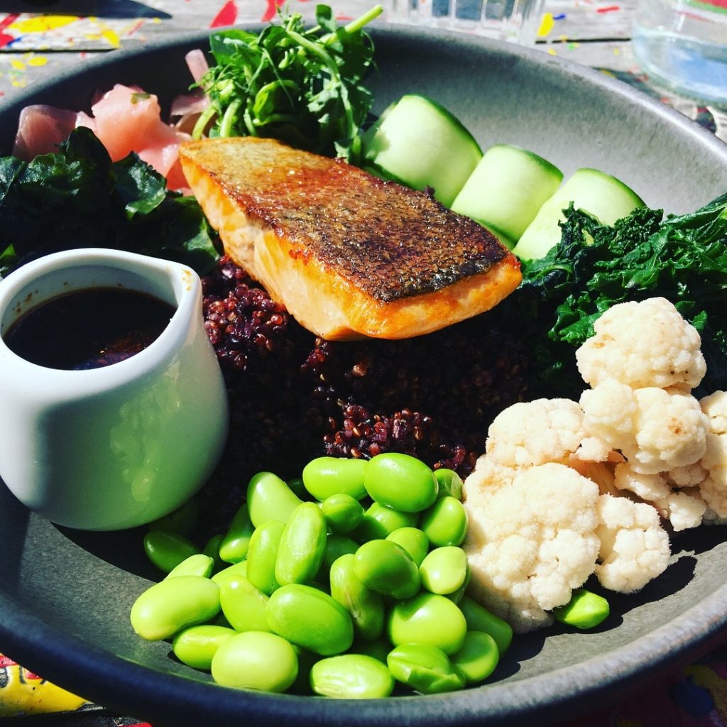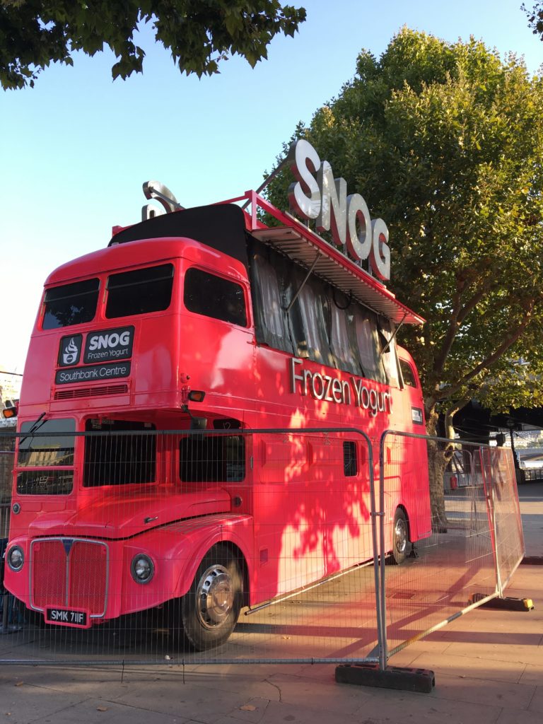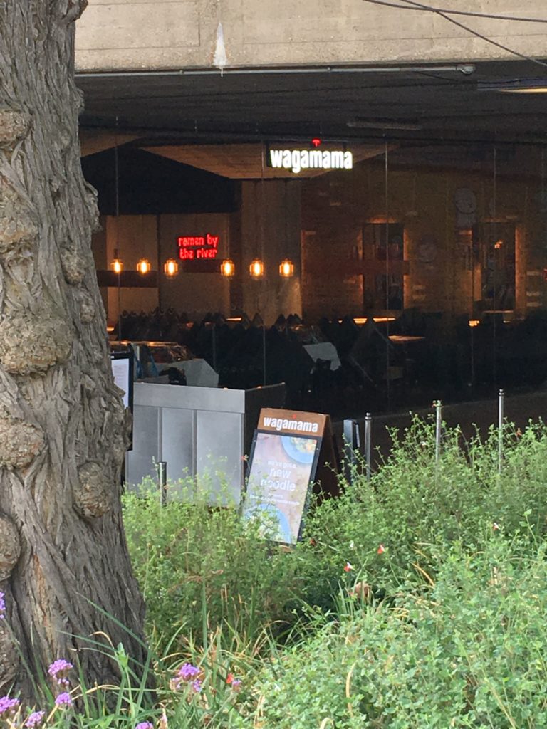 テムズ川の南岸サウスバンクにあった色々♪ピンクのダブルデッカーはフローズンヨーグルトのお店。遠くにお店の名前が見える写真。「レストラン・Wagamama」笑! そして、このおいしそうな写真!ロンドンに入ってからずっとポテトばかりで野菜を欲していたので、野菜メインのランチプレート。わかめや枝豆、ガリ等とってもヘルシーメニューでした♪