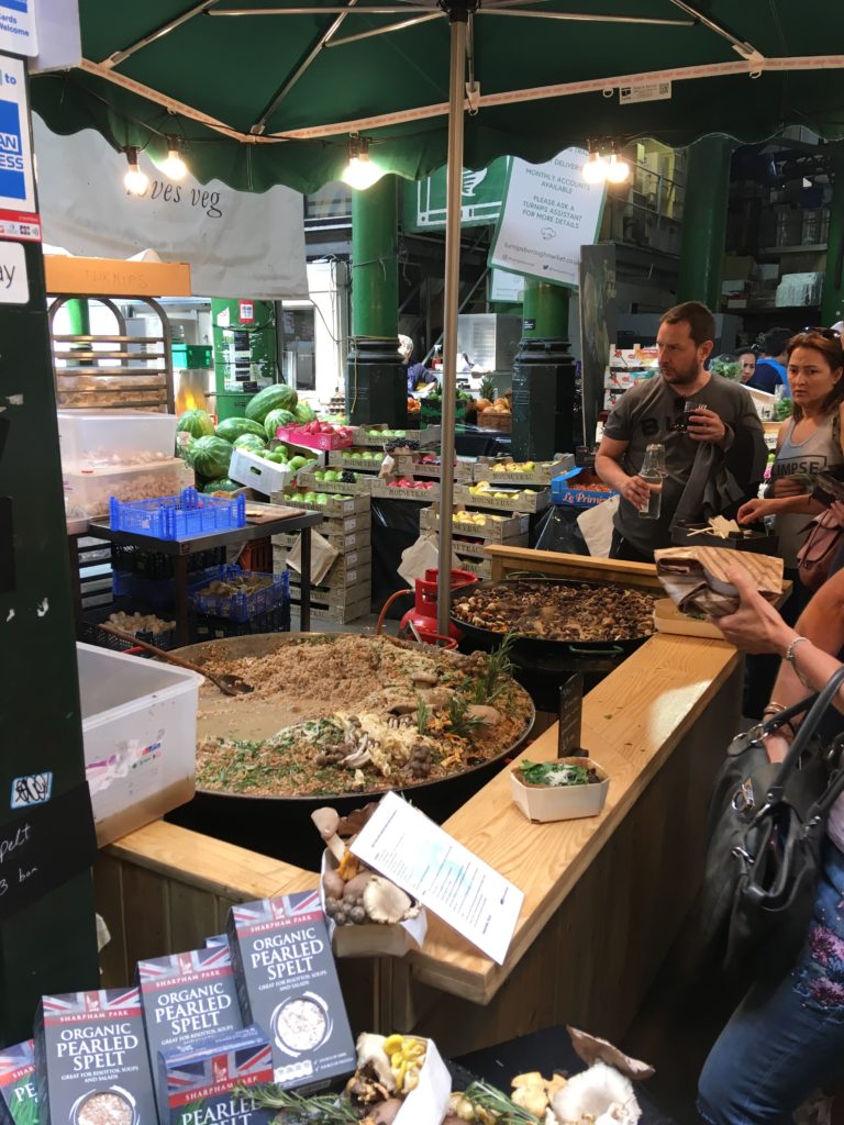 バラ・マーケット。ロンドン・ブリッジからほど近い場所にあるロンドン屈指の人気食材マーケットです!このエリアだけ人人人!