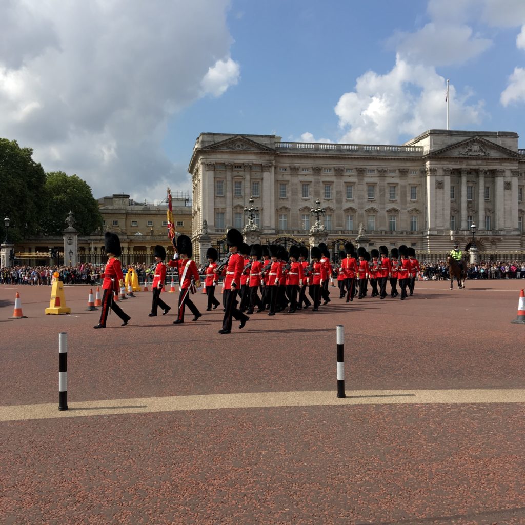 バッキンガム宮殿。ここは観ておかなくては!と思い行ってみると、偶然にもパレードを見ることができました!