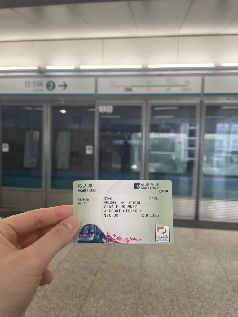 尖沙咀駅は赤い路線で、空港から赤い路線にたどり着くには、空港駅➡青衣駅➡茘景駅➡(赤い路線に乗り換えして)➡尖沙咀駅ということがわかりました。後にMTRモバイルという乗り換え案内アプリと、Google Mapの併用が便利と知りました。