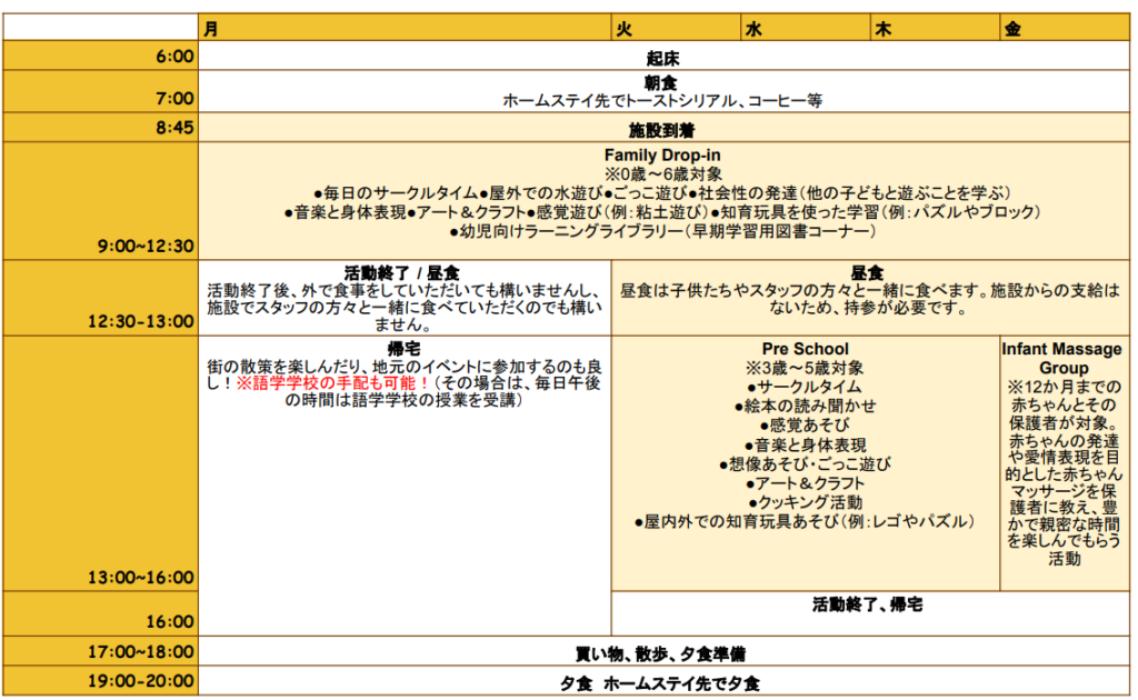 - Family Drop-in Program(児童館プログラム):月曜日~金曜日 午前中