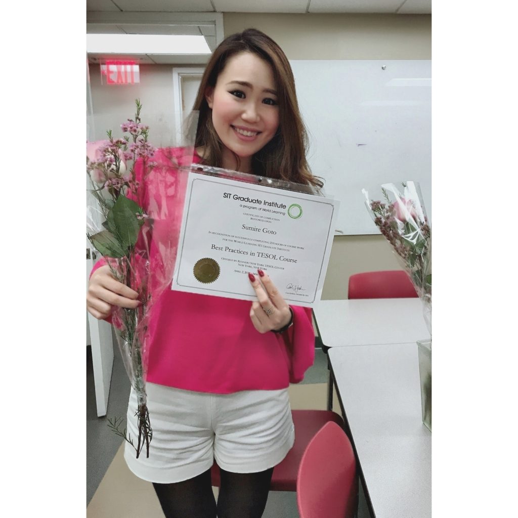 S.Gさん、素敵な体験談をありがとうございます!RennertニューヨークのTESOL(英語教授法)コースはレベルが高く、受講資格を得られる学生も少ない中、渡航後すぐに先生からの推薦があり、語学コースの受講期間を変更しTESOLコースを開始しました。体験談からも読み取れますが、とてもレベルが高くハードなコースだったようですが、最後まで全力で取り組まれていたことが最終的に自信につながったのではないでしょうか!ご帰国後わざわざ弊社までご挨拶にお越しいただき、その時に「中途半端な気持ちだと絶対にドロップアウトしてしまいますが本気で英語教師になりたい方にはとてもためになるコースです!」と仰っておりました。今後も英語教授法を希望されるお客様にご紹介していこうと思います。